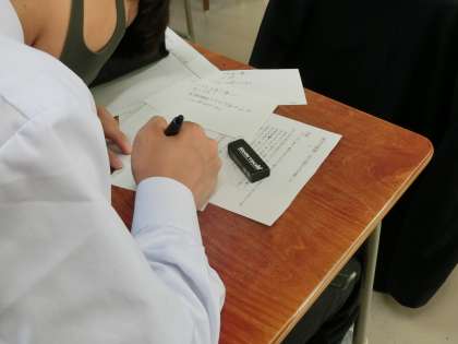 11月4日(金)5・6時間目に実施した高校授業体験にて、東京都立深沢高等学校の中村 せつ子先生による体験授業「国語表現 自己紹介文を書こう」
