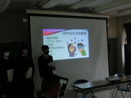 校医の先生方をお呼びし、学校保健委員会が行われました。今回は最初に保健委員が「感染症の予防」について発表しました。
