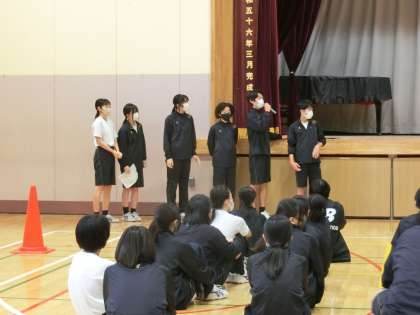 12月13日(火)5・6時間目に、第2学年では学年委員主催による学年レクを実施しました。学年委員は先週の放課後等を利用して入念な企画・準備をし、クラスでのチーム決めや事前説明等を行いました。「クラスを超えて学年の繋がりを持ち、仲を深める」ことを目的として、クラス内だけでなく協力して活動することができました。学年委員の皆さん、そしてチームワークを大切に活動できた2年生の皆さん、本当にありがとうございました。