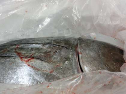 周りの人や氷のサイズからマグロの大きさが想像できると思います。