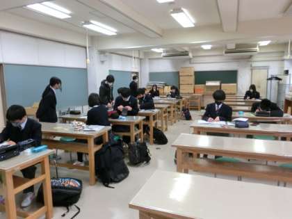 1年生は、今週三者面談で授業が早く終了しています。放課後、作品展の準備で作品ができていない生徒は残って作品を作成しています。