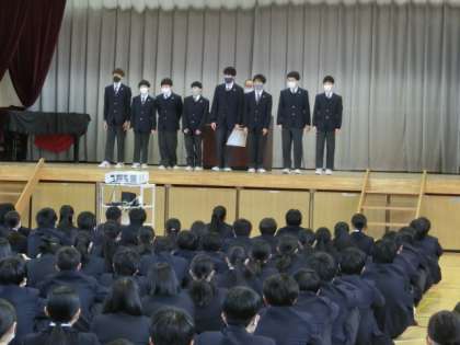 校長先生に卓球部の1年生大会の表彰をしていただきました。団体戦でAチームもBチームもどちらのカテゴリーで1位優勝です。