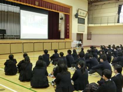 3月12日(月)1時時間目に、3年生の学年集会が行われました。