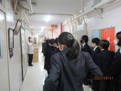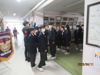 4月11日(火)、本日は1年生は校内見学がありました。駒留中学校の校内を担任の先生と一緒に見学し、職員室での対応などの説明を受けました。校内の色々な場所の事を知ることができたと思います。