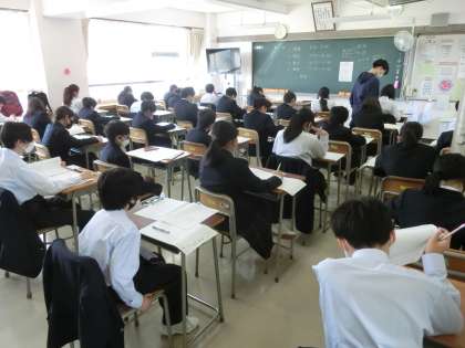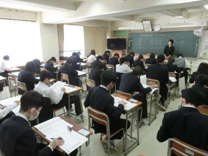 写真は問題に取り組んでいる様子です。(左から1年、2年、3年です)