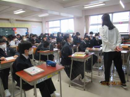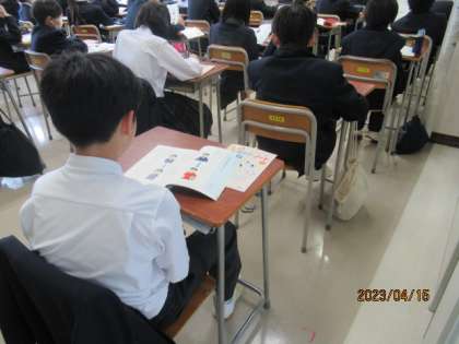 4月15日(土)、本日は土曜授業日です。1時間目は教科「道徳」でした。「自分で決めるって?」という題材でした。中学生になって自分で決めることが多くなるので、自分で決めるときに大切なことをことについてみんなで考えました。