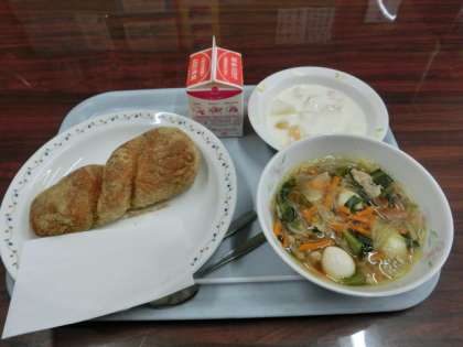 メニューは牛乳、春雨スープ、揚げパン、フルーツヨーグルトでした。このメニューは大人気で食缶が空になりました。給食を作ってくださる太子堂調理場の皆様ありがとうございます。