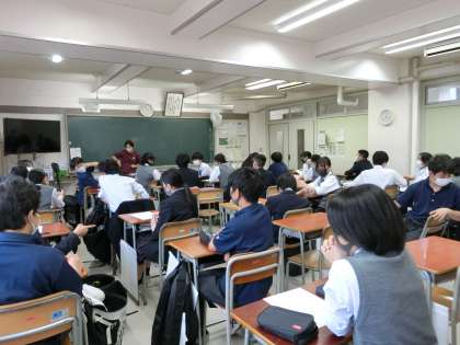 5月11日の6時間目、上級学校調べが始まりました。一回目の今日は、調べ学習の分担を行いました。