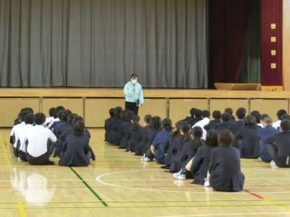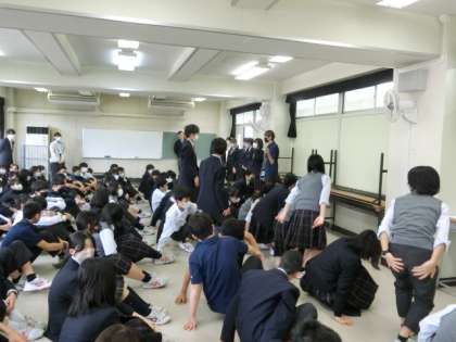 15日は学年朝会日です。1年生は中止、2年生は多目的室、3年生は体育館で学年朝会を開きました。3枚目の写真は多目的室を元に戻す2年生の生徒達です。
