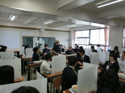本校に来た6人は少し緊張した様子で各教室に入り、自己紹介のあとみんなで給食を食べ、5・6時間目の授業に参加しました。授業の内容は理解できたかな?