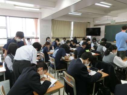 15日の2年の学年朝会では、今日から4日間来校するマウントテーバー中の8年生を迎えるにあたり、学級委員から「いつも通りではなく記憶に残る貴重な4日間にしましょう」と話がありました。みんなも来るのを楽しみにしている様子でした。