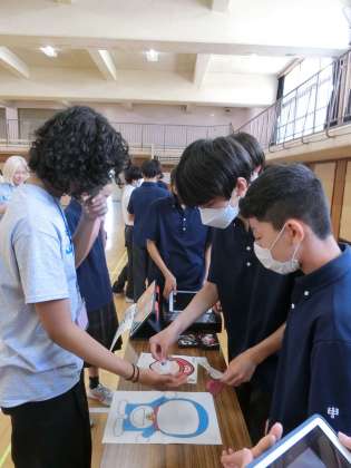 3時間目は日本文化を伝えよう、と題し、各学級の班(全部で18班)で設定したテーマでブース運営をしました。日本の遊びやマナー、文化の紹介など、さまざまなブースがあり、マウントテーバー中のみなさんはそれぞれのブースで話を聞いたり体験したりして楽しんでいました。自分で作ったものや書いたものは持ち帰りました。いいお土産になりましたね。