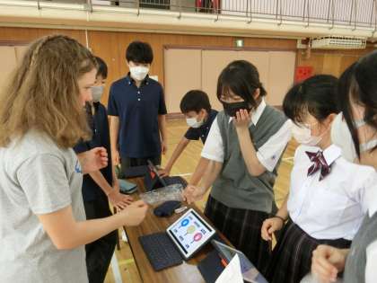 15日から本校にオレゴン州ポートランド市のマウントテーバー中のみなさんが2年生と一緒に過ごしています。最終日の今日の3時間目と4時間目に国際交流イベントを行いました。