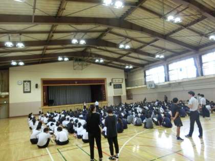 5時間目は、運動会延期による時程変更について全体学活を行いました。