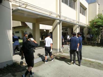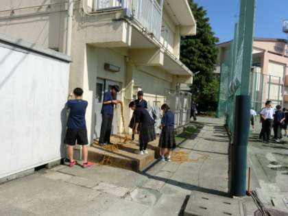 天気予報通り晴になり、校庭のコンディションも良いので、火曜日の運動会準備が始まりました。