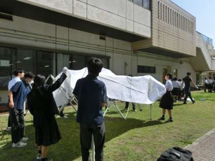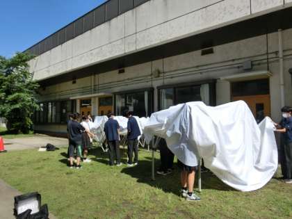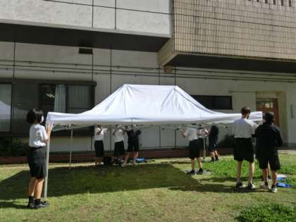 生徒用簡易テントは当日の朝素早く設営できるように、一度設営の練習をし、片付けを行いました。