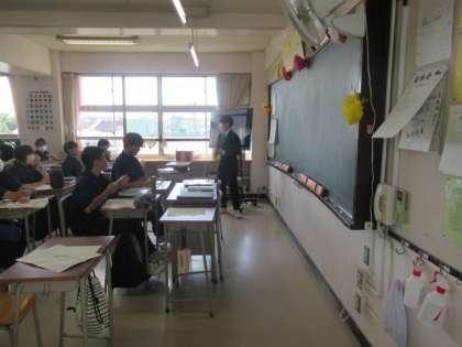 6月7日(水)、本日は1時間目に教育実習生の先生による研究授業(少人数授業)が1年3組で行なわれました。運動会の翌日でしたが、みんなしっかりと授業に集中していました。
