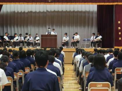 6時間目は生徒会選挙の立ち合い演説会です。立候補者と応援演説者1人が演説をしました。その後、投票です。