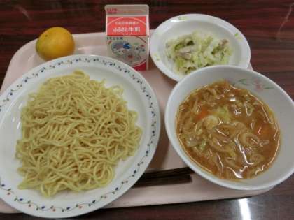 メニューは牛乳、味噌ラーメン、ハムサラダ、ミカンです。