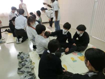 ボランティアのお母さん方のご協力により、0歳児の赤ちゃん達が駒留中の家庭科の授業に来てくれました。