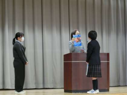 表彰は国際絵画コンクール、競書会、読書コンクール、写真コンクールの入選がありました。