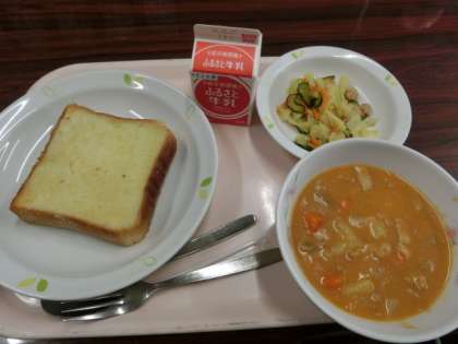 メニューはシュガートースト、ポークシチュー、ツナサラダです。