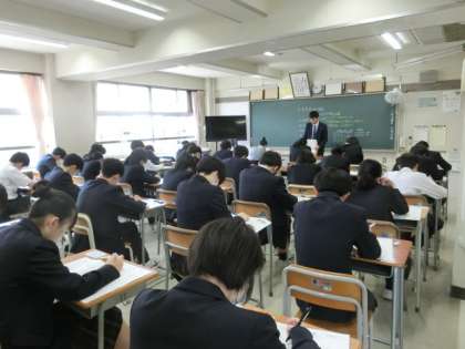 1時間目より学習習得確認調査を行っています。1年生は4教科、2・3年生は5教科です。試験は昨年度学習した範囲です。