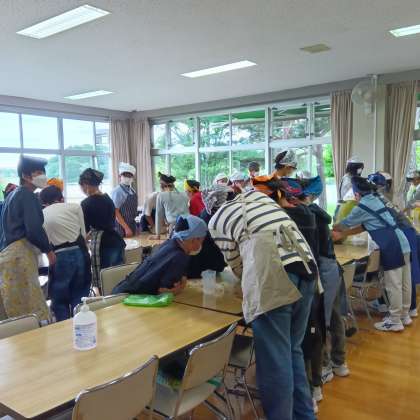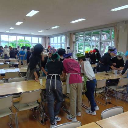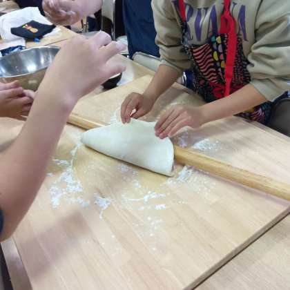 学園長のご指導で夕食のうどんを粉からつくりました。