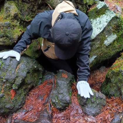 樹海の溶岩樹形の洞窟を通りました。
