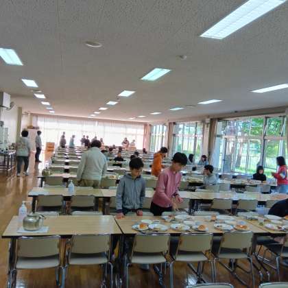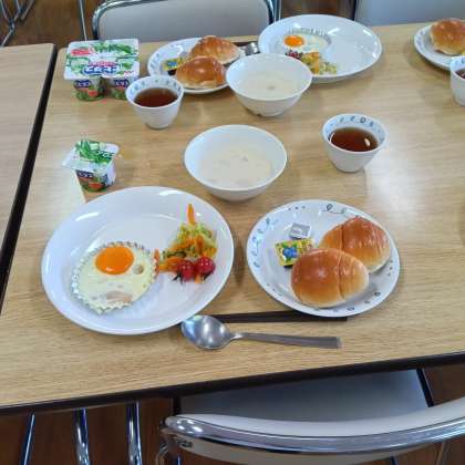 本日は、洋食です。調理員さんは朝4時半開始で皆さんのために食事をつくってくださいます。感謝して食べましょう。
