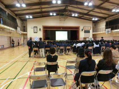 世田谷警察からお二人お越しになり、SNSの怖さについてDVDやお話をしていただきました。