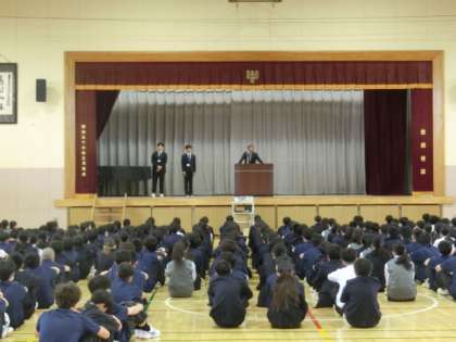 生徒朝会のほかに教育実習生の先生の紹介もありました。