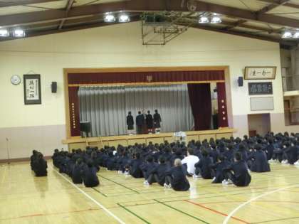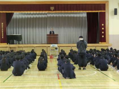 その後、バドミントン部、卓球部活動、図書委員会の表彰。安全指導のお話がありました。
