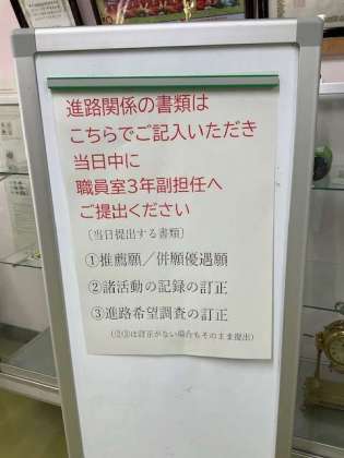今週は三者面談です。時間調整のご協力ありがとうございます。3年生は進路先を決定する大切な面談です。3年生は自分自身のキャリアをしっかり考えて臨んでいました。