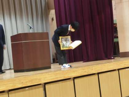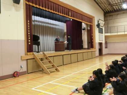 その後、校歌斉唱、表彰、生活指導主任の先生のお話がありました。