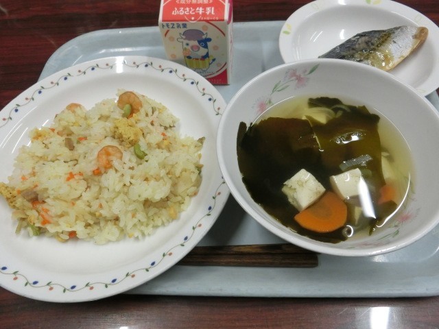 メニューは牛乳、ちらしずし、鰆の煮魚、お吸い物です。給食なので、錦糸卵は炒り卵、さやえんどうが枝豆です。