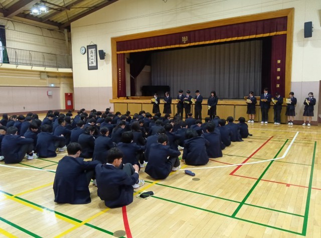 2年生が校外学習の事前指導を行いました。明日鎌倉に行きます。現在天候が不安定ですが、明日は充実した日にしてほしいと思います。