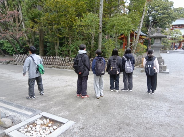 鎌倉では到着順に班行動が始まっています。こちらは鶴岡八幡宮の様子です。