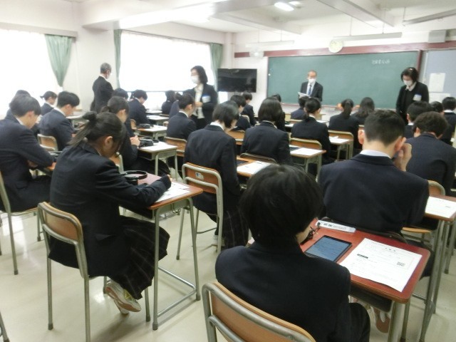 1,2年生は2時間目から4時間目にかけて英語のスピーキングテストを行いました。各クラス1時間かけて行います。皆一所懸命に取り組んでいました。
