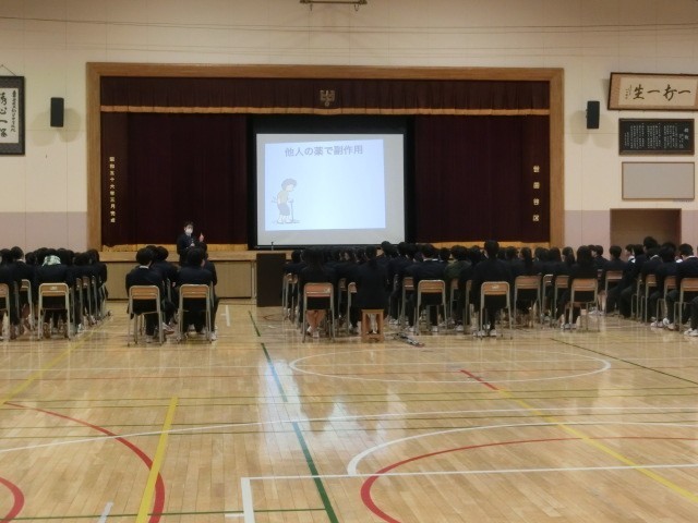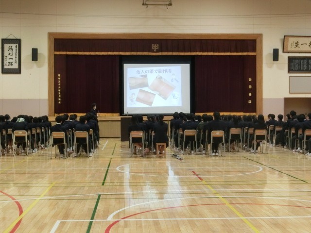 4時間目に3年生は薬物乱用防止について本校の薬剤師さんからお話を聞きました。たとえ湿布でも本人でないものは使用しない等わかりやすくお話していただきました。