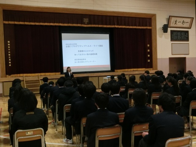 5時間目に、世田谷保健所より講師をお迎えして、「リプロダクティブ・ヘルツ・ライツ講座」を行いました。2年生は格技室で、3年生は体育館でお話を聞きました。これを機会に、自分の人生についてどう過ごすかを考えてほしいです。