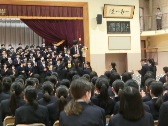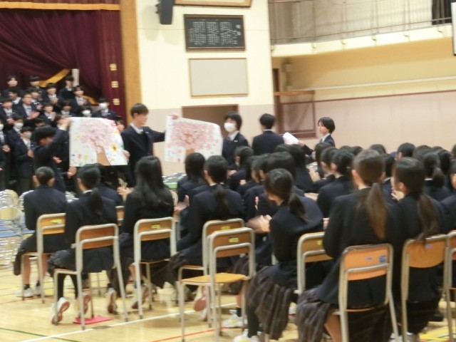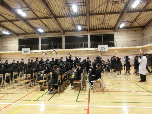 3月12日5時間目に3年生を送る会が行われました。合唱や吹奏楽の演奏、お礼の言葉等、楽しいひと時でした。