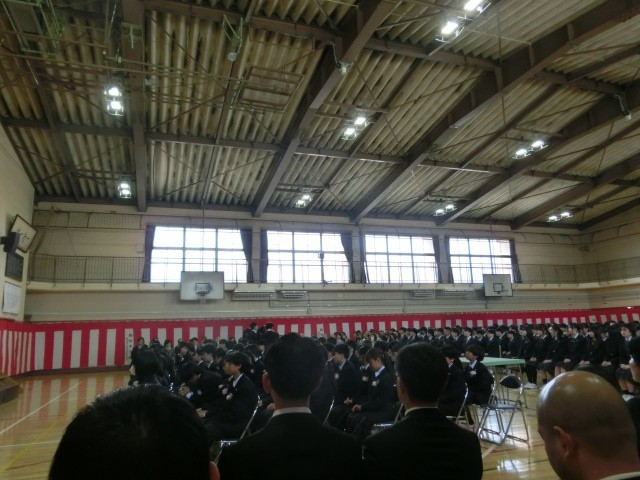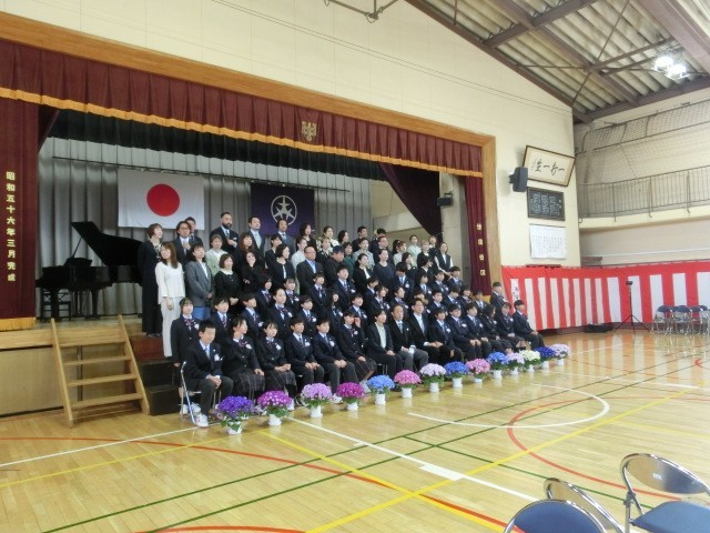 入学式が8日とり行われました。在校生から歓迎の歌で「南風」が披露されました。式後、記念撮影が行われました。皆緊張しているようでカメラmンさんから「笑顔」との声かけがありました。新入生の皆さんお疲れさまでした。
