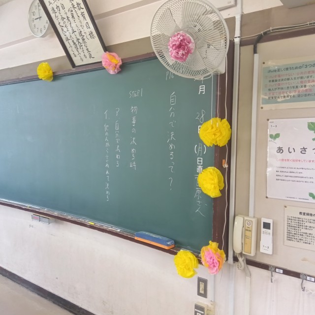 今日の道徳では、「自分で決めるって?」という教材を用いて自主・自律・自由と責任について考えを深めました。