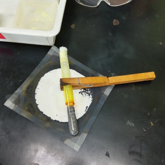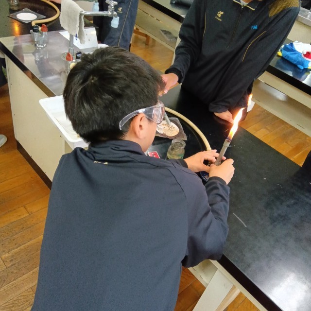 今日は実験をしました。鉄と硫黄を混ぜたものを加熱し、硫化鉄が生成されることを学びました。