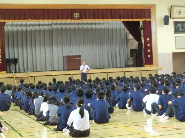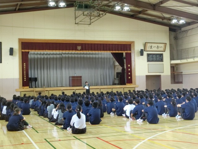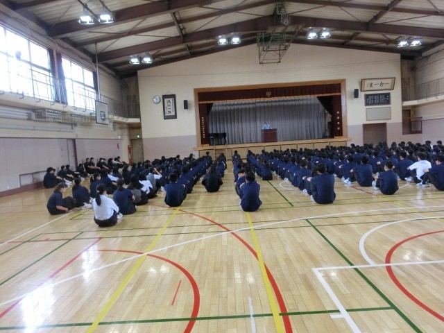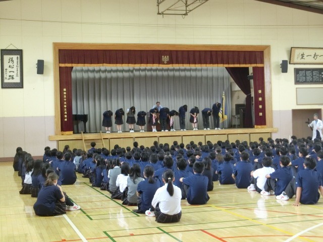 全校朝会は、校長先生のお話、運動会の表彰、雨の日の過ごし方を安全担当の先生から、運動会後の生活について生活指導主任からお話がありました。