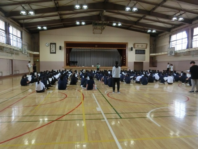 明日13日午前中3時間目までは体力調査です。その前に、6時間目に体育館で全体説明がありました。体調を整え、明日自己ベストの記録が出るとよいですね。