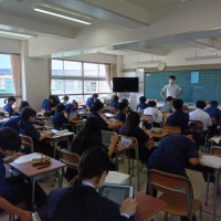 職場体験を来週にひかえた2年生がマナー講習を受けました。講師は第一商業高等学校の...