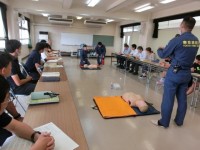 放課後に先生方の研修でAEDの使用訓練を行いました。皆真剣に心臓マッサージの練習...