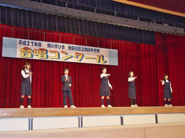 私たち手話部は、手話をとおしてコミュニケーションの輪を広めていくことを目標として、週2回、活動しています。部員同士の中が良く、一人ひとりがお互いの意見を出しあって、のびのびと手話を学んでいます。主な活動内容としては、手話の学習のほかに、合唱コンクールや世田谷区地域音楽祭などでの手話歌の発表などがあります。